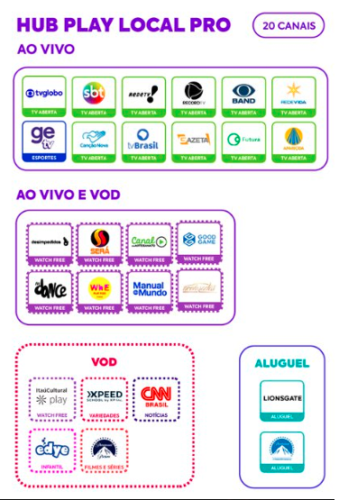 Canais do Pacote Hub Play Local Top